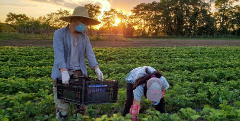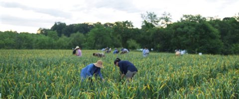 We plant flowering farmscapes and cover crops to attract beneficial insects to the areas around our crops. We hand-pick pests and sometimes buy beneficial insects that we can release where pest populations are damaging crops. When necessary, we spray our crops with organically-approved controls, including Bacillus thuringiensis. Rotating our crops also helps us control insect pests. We use fences to deter deers.